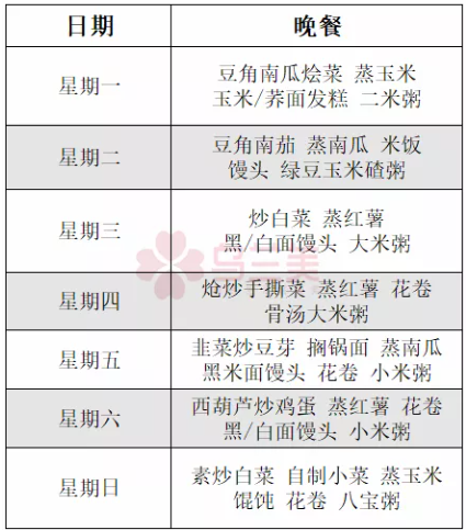 烏蘭美康養(yǎng)院10月18日~24日一周晚餐食譜